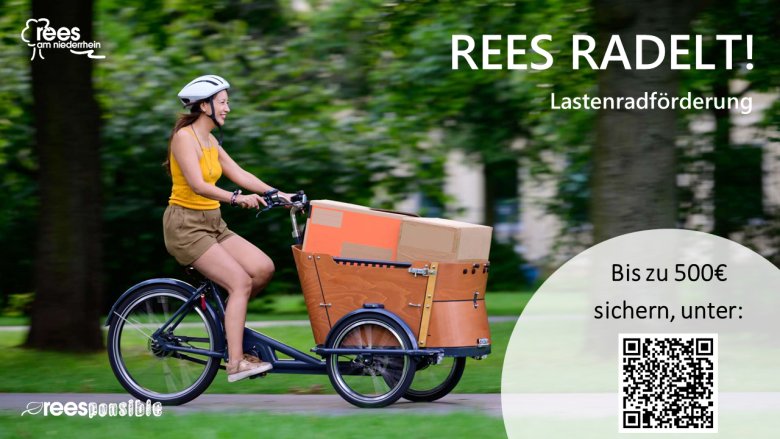 Mit dem Förderprogram „REES RADELT!“ unterstützt die Stadt Rees ab sofort das Engagement der Bürgerinnen und Bürger, einen Teil zur Verkehrswende beizutragen. Fahrradfahren ist nicht nur gut für die Umwelt, sondern fördert auch die Gesundheit. Insbesondere Lastenräder helfen dabei, im Alltag auf die Nutzung des Autos zu verzichten. So lassen sich Einkäufe oder beispielsweise auch der tägliche Weg zur Kita gut mit Lastenräder bewerkstelligen. Die Stadt Rees fördert die Anschaffung von Lastenräder in Form eines Zuschusses mit bis zu 50 %, maximal jedoch 500 €. Gefördert werden Lastenräder, die entweder elektrisch unterstützt oder rein per Muskelkraft betrieben werden. Die Begriffe Lastenfahrrad, Transportrad, Cargobike oder Bakfiets sind dem Begriff Lastenrad gleichgesetzt. Lastenräder sind entweder zwei- oder dreirädrig und besitzen eine Ladefläche vor dem Lenkrad, welche entweder dem Transport von Gegenständen oder Personen dienen kann.