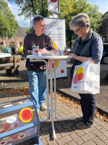 heimat shoppen Aktionen am 10.09.25 auf den Wochenmarkt in Haldern sowie am 13.09.25 auf dem Wochenmarkt in Rees