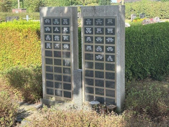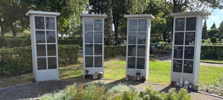 Bei einer Bestattung in einer Urnengemeinschaftsgrabstätte handelt es sich um eine Grabstätte für Bestattungen, die der Reihe nach belegt werden und an denen im Todesfall ein Nutzungsrecht für die Dauer von 25 Jahren verliehen wird. Ein Wiedererwerb des Nutzungsrechtes ist nicht möglich. Die Grabpflege für die Dauer der Nutzungszeit des Verstorbenen wird durch den Friedhofsträger geleistet. Die hierfür anfallenden Kosten werden für die gesamte Nutzungszeit als Gebühr erhoben. Das gleiche gilt für die Gravur der Platten, welche durch den Friedhofsträger veranlasst werden. Jegliche Anbringung von Grabschmuck wie Pflanzen, Blumenvasen, Grablichtern und ähnlichem sowie das Aufstellen von Grabmalen sind insoweit nicht zulässig. Die gepflegte und pietätvolle Gestaltung der Ruhestätte erfolgt im Ermessen des Friedhofsträger.