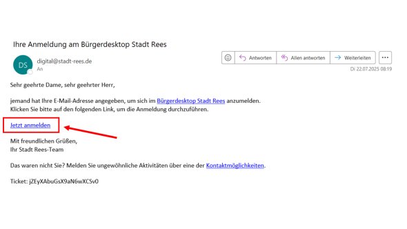 - Öffnen Sie die erhaltene E-Mail von „digital@stadt-rees.de“.