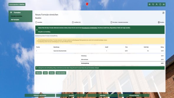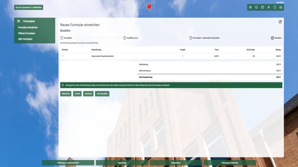 Kostenpflichtige Formulare können sicher und bequem online bezahlt werden – z. B. per PayPal oder Kreditkarte.