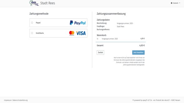 Wie kann ich beim Bürgerdesktop der Stadt Rees bezahlen?