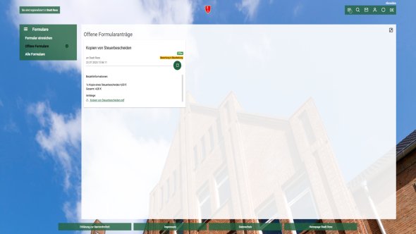 - Nach erfolgreicher Zahlung sehen Sie Ihren Antrag unter „Offene Formulare“.