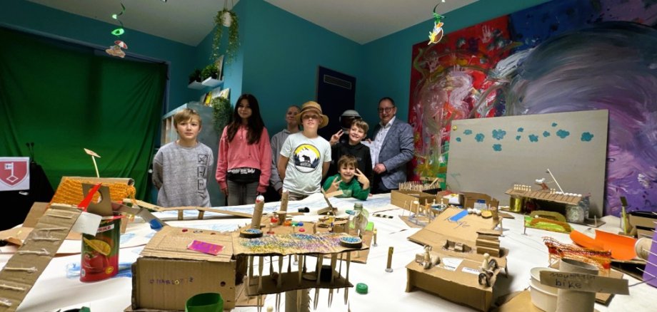REES. Im Reeser Rathaus steht jetzt ein besonderes Stadtmodell. Zu sehen sind kreativ gestaltete Elemente aus verschiedensten Bastel-Materialien, die sich Kinder und Jugendlichen für die Rheinstadt erdacht haben. Darunter sind ein Bike- und Kletterpark, die Erneuerung des Basketballfeldes sowie ein Zebrastreifen für den Übergang zum Schulzentrum am Westring. „Es ist eine ganz besondere und wichtige Perspektive auf unsere Stadt“, sagt der Reeser Bürgermeister Sebastian Hense bei der Präsentation des Workshops. Der fand an zwei Tagen im Jugendhaus Remix statt. Das „Team Raumstation“ von Diskurs Niederrhein hat den mit Kindern im Alter von 8 bis 12 Jahren durchgeführt.
