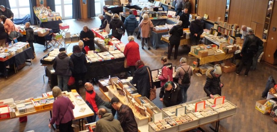 An den Ständen im großen Saal, im Foyer und auf der Galerie werden Tausende von alten, gebrauchten und teils uralten Büchern angeboten. Dazu gehören Krimis und Thriller, Fantasy und New Adult, Kinderbücher- und Jugendbücher oder auch Kunst- und Heimatbücher. Die Händler kommen teils aus der näheren Umgebung, aber auch aus dem Ruhrgebiet und dem Münsterland. Einige sind schon seit langem beim Büchermarkt im Reeser Bürgerhaus dabei.