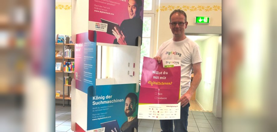 In diesem Jahr steht der Digitaltag unter dem Motto: „Digitale Demokratie: Mitreden. Mitgestalten. Mitwirken“. Hier weist das Team der Stadtbücherei besonders auf das Angebot des Pressreaders hin, durch den Kunden der Stadtbücherei Zugang zu über 6.000 digitalen Zeitungen und Zeitschriften haben. „Zeitung lesen bedeutet, informiert zu bleiben und Hintergrundwissen zu erhalten“, erklärt Büchereileiter Dierkes. Mit diesem Wissen können Nachrichten besser eingeordnet und Zusammenhänge besser verstanden werden. Bibliotheken bieten diesen Zugang zu Informationen und leisten damit einen Beitrag zum Bestand unserer Demokratie.