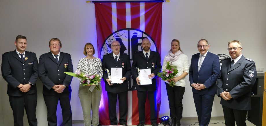 Matthias Storm gehört zu den Feuerwehrleuten, die ihren Beruf zum Hobby gemacht haben. Er begann vor 25 Jahren seinen Dienst als hauptamtlicher Feuerwehrmann bei der Feuerwehr Wesel und trat erst danach in die Halderner Feuerwehr ein. Beruflich wechselte er zwischenzeitlich als Disponent zur Einsatzleitstelle des Kreises Wesel, und inzwischen arbeitet er beim Vorbeugenden Brandschutz in Wesel. Aber auch als freiwilliger Feuerwehrmann besuchte er zahlreiche Lehrgänge. Aufgrund seines Fachwissens, seiner Kompetenz und seiner Menschlichkeit hat er das Vertrauen der Halderner Feuerwehrleute und bekleidet deshalb seit 2014 als Stadtbrandinspektor das Amt des Löschzugführers. Das Feuerwehrblut liegt bei ihm wohl in der Familie, denn inzwischen sind seine beiden Söhne Benedikt und David ebenfalls Angehörige der Feuerwehr Haldern. Bürgermeister Sebastian Hense und Wehrleiter Marc Pohle dankten ausdrücklich auch den beiden Partnerinnen von Helmut Burgschat und Matthias Storm, die ihren Männern für den Feuerwehrdienst den Rücken freihalten, ehe sie den beiden Jubilaren das Feuerwehrehrenzeichen in Silber verliehen.