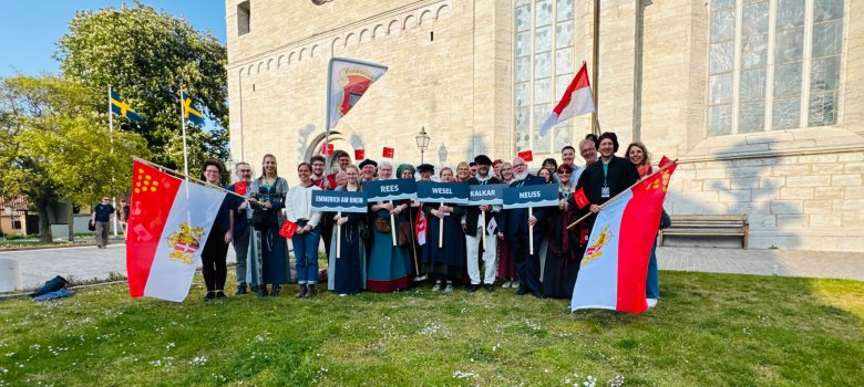 REES. Der internationale Hansetage in Visby (Schweden) hat europäische Einheit gezeigt. Über 78 Städte waren hier mit 1.200 Delegierten vertreten, um ihre Region zu repräsentieren und den grenzüberschreitenden Austausch zu fördern. Mittendrin war auch die Rheinische Hanse. Das ist ein Zusammenschluss der Städte Emmerich am Rhein, Dinslaken, Kalkar/Grieth, Neuss, Rees und Wesel. „Es war eine besondere Atmosphäre, in der die internationale Freundschaft gelebt wurde“, beschreibt es Ole Engfeld von der Stadt Rees, der als Repräsentant mit nach Visby fuhr. Hier befand sich die Rheinische Hanse in bester Gesellschaft mit Städten wie Hamburg, Lübeck, Bergen, Brügge, Kings Lynn, La Rochelle, Danzig, Pärnu und vielen weiteren Vertretungen aus 13 Ländern. Neben dem traditionellen Hansemarkt, auf dem sich die Hansestädte mit ihrer Region präsentierten, haben die Organisatoren auch Wert auf kulturelle Darbietungen und den Austausch gelegt. In der ganzen 23.000-Einwohner-Stadt gab es Bühnen mit Musik sowie Tanz, Workshops, Chöre, Empfänge und der Möglichkeit zum Austausch.