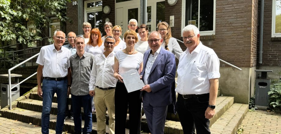 Den Antrag für die Förderung brachte Bürgermeister Sebastian Hense persönlich vorbei. Bei dem Besuch zeigte ihm das Ärzte-Team und die sieben Mitarbeiterinnen die Praxis-räumlichkeiten sowie die geplanten Maßnahmen.