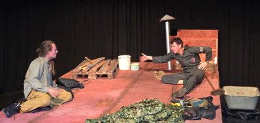 Es handelt von zwei feindlichen Soldaten, die auf einem Hausdach im Wasser treiben. Keiner versteht die Sprache des anderen. Die beiden müssen aber lernen, dass sie nur dann überleben werden, wenn sie kooperieren. Auf der Bühne entstehen dramatische, aber auch komische Szenen. „Der Gedanke, dass da zwei sich feindliche gegenüberstehende einsehen müssen, dass sie es nur zusammen schaffen, hat etwas Wichtiges und Aktuelles”, so Frost und weiter: „Das Faszinierende am Theater und in der Musik ist, dass da im Kopf des Publikums Welten entstehen. Es braucht nur Töne, Licht und eine Szenerie.” Eben das mache auch ein Theatererlebnis so intensiv: „Mindestens eine Hälfte dessen, was da passiert, findet nur im Kopf statt.”