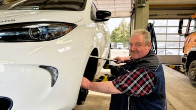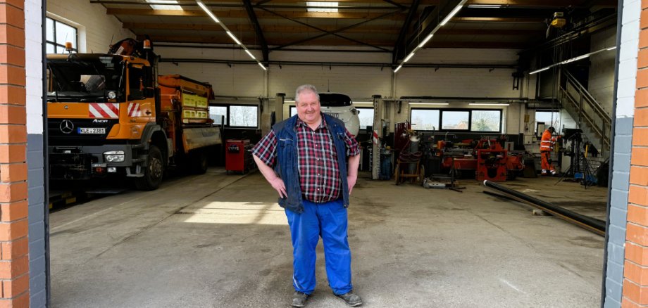 Vom Feuerwehrfahrzug bis zum Auto – in der Werkstatt des Bauhofbetriebes reparieren Josef „Jupp“ Meyboom und seine Kollegen den städtischen Fuhrpark selber. Foto: © Stadt Rees