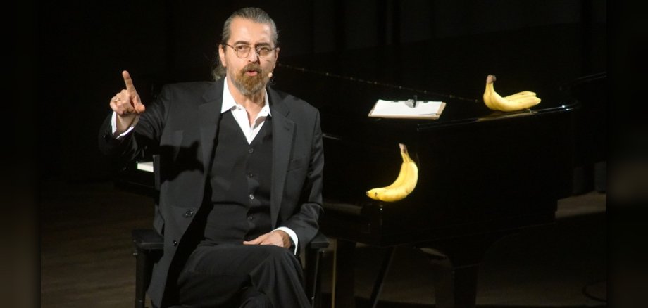 Der schwarze Flügel, neben dem sich Hagen Rether auf einem Bürostuhl vielmals räkelte, kam zum Ende seines Programms zum Einsatz. Die darauf drapierten Bananen fanden dann auch als „Wurf-Zugabe“ ihren Weg ins Publikum. Es waren knapp vier Stunden Hagen-Rether-Vollprogramm mit „Liebe“ in vielen Facetten, die im Gedächtnis bleiben und sicherlich zum Nach- sowie Weiterdenken anregen. Vergessen waren die zwei Abende, die krankheitsbedingt abgesagt werden mussten. Und es war die kaltschnäuzige Antwort auf Friedrich Merz, dass es mindestens einem Deutschen nicht an Arbeitswillen fehlt.