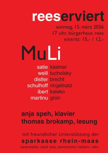REES. Das kommenden „reeserviert“-Konzert am Sonntag, den 15. März, um 17 Uhr, widmet sich den schillernden 1920er-Jahren und verbindet auf besondere Weise Literatur und Musik. Im Mittelpunkt steht dabei das spannungsreiche Wechselspiel zwischen rezitierten Texten und eigenständigen Klavierwerken.