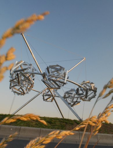 Die Installation stellt eine Momentaufnahme eines vorgestellten Geschehens im Weltraum dar. Planeten kreisen auf unsichtbar fest gefügten Bahnen sicher gehalten und gehören zu einem System, das einen Mittelpunkt und mehrere Knotenpunkte bildet. Im übertragenden Sinne lassen sich im Objekt Sehnsüchte des Menschen erkennen. Nach Sicherheit, nach einem geordneten System, das trägt und Anknüpfungen für Gemeinschaften, für soziale Beziehungen bildet.
