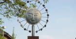 Das ca. 3 m hohe Kunstobjekt besteht aus Holz, Glas und Stahl. Es hat eine fröhlich tanzende Form und soll beim Betrachten ein stimmungsvolles Gefühl auslösen. Besonders bei schönem Wetter scheinen die Sonnenstrahlen durch das bunte Glas zu tanzen und gute Laune zu verbreiten.