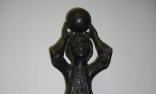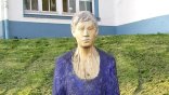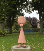 Der Künstler Manni Hallen gestaltet mit Baustahl und Beton figürliche Skulpturen in verschiedenen Situationen. Hier ist eine eher kindliche Figur dargestellt, die dem Betrachter trotzig die Zunge rausstreckt.