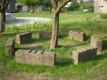 Eine vierseitige Säule auf der die vier Jahreszeiten dargestellt sind. Frühling, Sommer, Herbst und Winter. Auf dem oberen Säulenende sind die Sonne und der Mond dargestellt: Der Tag und die Nacht.