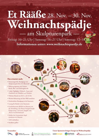 „Et Rääße Weihnachtspädje“ ist eine Gemeinschaftsveranstaltung der Stadt Rees, des Verkehrs- und Verschönerungsvereins Rees (VVV) und der Reeser Werbegemeinschaft (RWG).